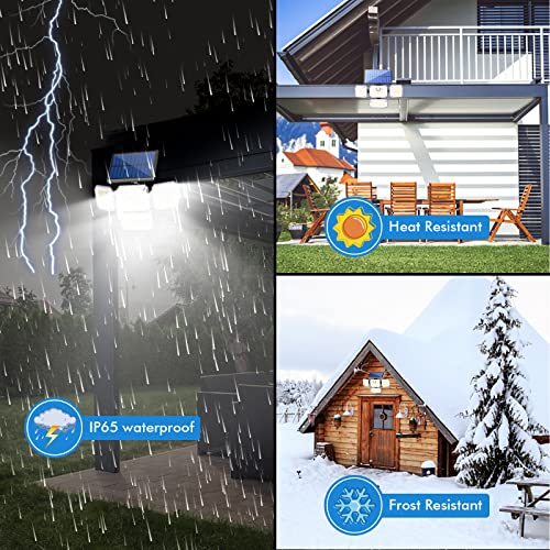 ✔Super Luminosità: La luce solare esterna ha 4 teste della lampada girevoli, che possono essere regolate su e giù e orizzontalmente, 333 perline LED super luminose, che possono produrre un'elevata luminosità fino a 2000LM, design dell'illuminazione grandangolare a 240° e l'illuminazione la portata può raggiungere i 70 metri quadrati e può illuminare istantaneamente l'ambiente circostante.