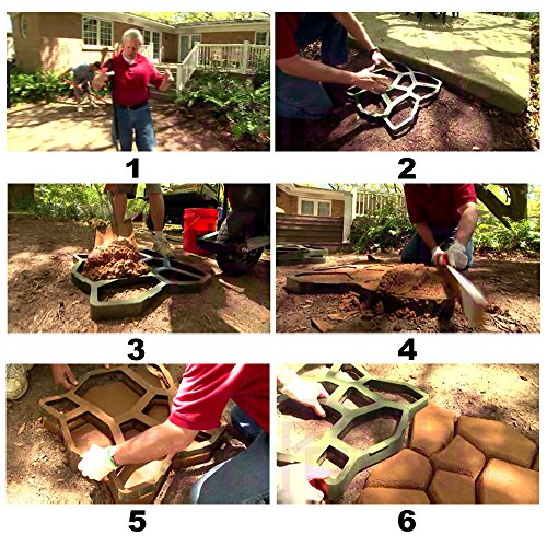 Facile da usare: 1. posizionare lo stampo di colata, 2. riempirlo di cemento/cemento, 3. lisciarlo con una cazzuola, 4. sollevare lo stampo. Non è richiesto un costoso paesaggista, basta aprire i tuoi percorsi da solo!