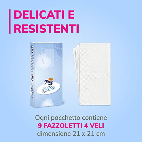 Foxy Fazzoletti di carta tascabili / 25 confezioni da 12 pacchetti / 4 veli / Con vere fibre di cotone / Carta 100% certificata FSC/ Confezione 100% riciclabile