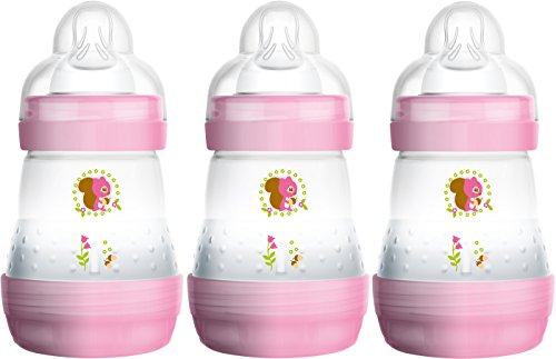 Mam FB0403G - Confezione da 3 biberon autosterilizzanti e anticoliche da 160 ml, colore: Rosa / Lilla - Istruzioni in lingua straniera