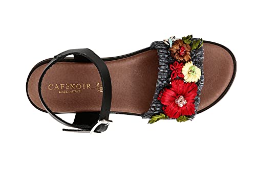 CAF NOIR FB931 nero Riemchen-Sandalen Frau fasca Blumen, Nero, 38 EU, nero, 38 EU
