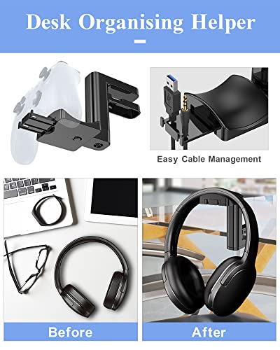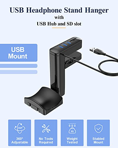 FBBULES Supporto per Cuffie con HUB USB, Porta Cuffie da Scrivania Regolabile con Rotazione a 360° Gancio per Cuffie con 3 Porte USB 2.0 + Cavo da 1,2 m