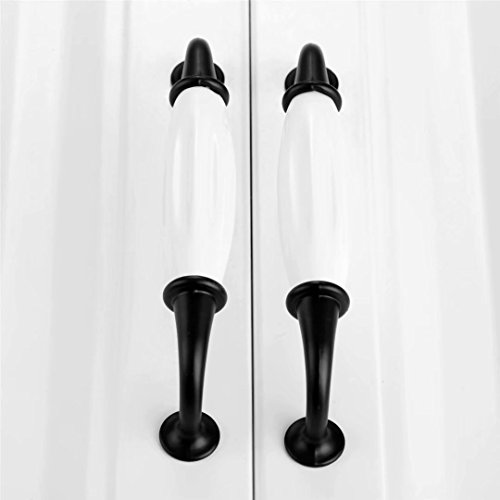 FBSHOP(TM) 2 pomelli in ceramica bianca e nera per porte e armadi da bagno, cassetti per camera da letto, mobili da cucina e soggiorno, distanza tra i fori A: 128 mm