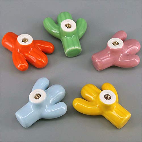 FBSHOP(TM) - 6 pomelli creativi in ceramica, a forma di cactus, per armadietti, armadi, cassetti, colore: verde