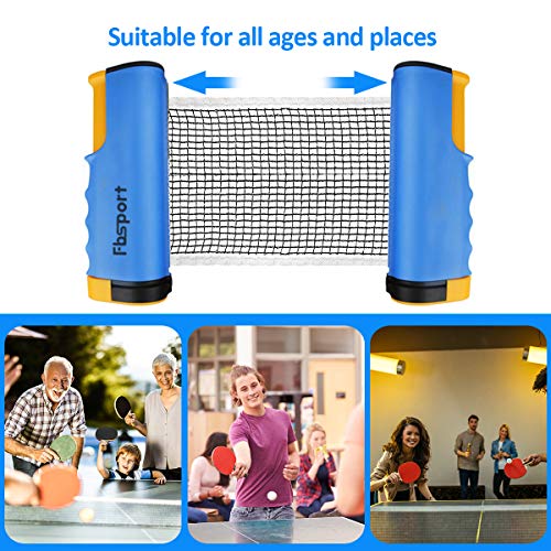 FBSPORT Set da Ping Pong, Racchette Ping Pong Set Professionale con 2 Racchette + 6 Palline + 1 Regolabile Rete + 1 Borsa Portatile per Formatori Adulti Bambini Indoor Outdoor