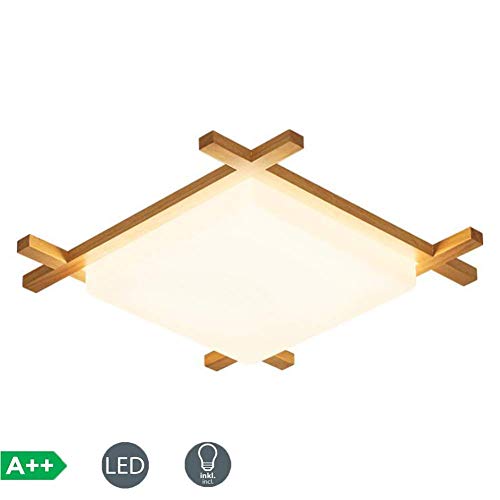 FCX-LIGHT LED Stile Giapponese Soffitto Lamp, Piazza Minimalista Plafoniera in Legno LED da soffitto per Camera da Letto Sala da Pranzo Hotel Cucina,Warmlight,60 * 60CM