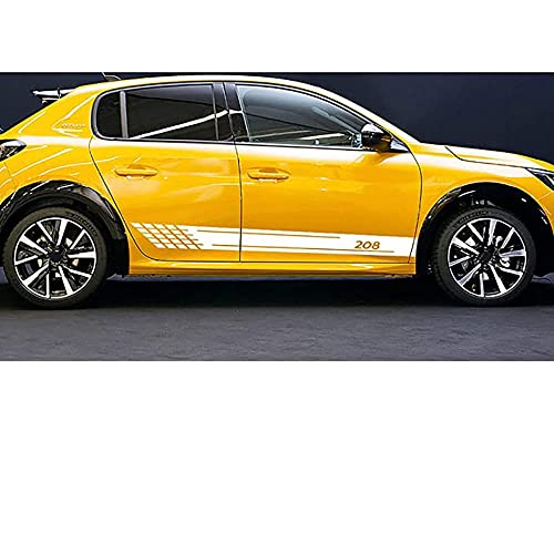 FCYYLIGHT 2X Vinile Adesivo per Auto, per Peu-geot 208,Porta Auto Laterale Gonna Strisce Adesivi Corpo Decalcomanie