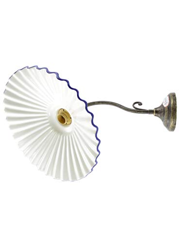 Fd-bolletta arredamento e illuminazione applique da parete interni,lampada ottone,applique vintage,lluminazione per interni,paralume ceramica blu am31.Misure:Ø piatto 29cm,sporgenza 40cm,Ø base 10cm