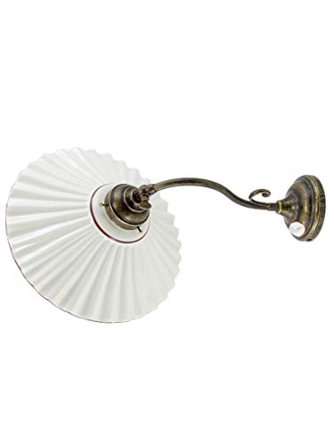 Fd-bolletta arredamento e illuminazione applique parete interni,lampada ottone,lluminazione interni,paralume ceramica marrone am30.Misure:Ø piatto 29cm,sporgenza 40cm,Ø base 10cm