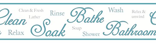 BHF FDB50032 Ceramica - Bordo autoadesivo per bagno, con scritte in lingua inglese, colore: Foglia di tè/Bianco
