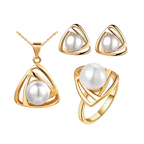 FDEETY Set di gioielli per donna Perle simulate Orecchini ad anello Set di gioielli per regali di nozze (Oro)