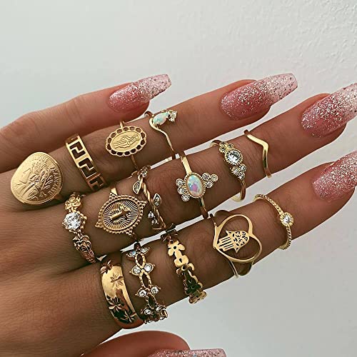 Anelli alla moda: questi set di anelli sono ottimi accessori di abbigliamento, offrendo una varietà di combinazioni diverse, abbinando vestiti per diverse occasioni, intarsiati con una varietà di strass, per renderti glamour.
