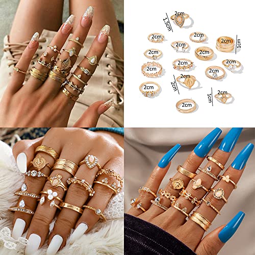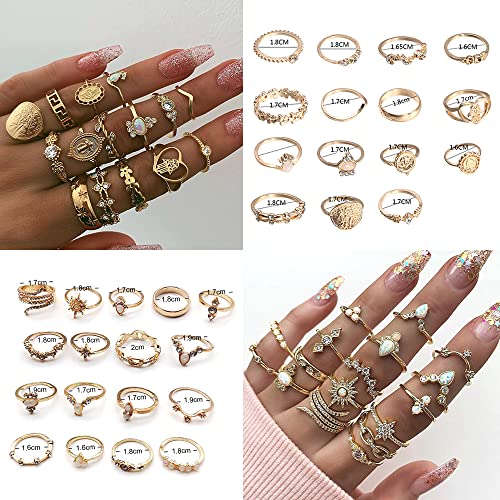 FDEETY 47 Pezzi Set di Anelli per Nocche Vintage, Nocche Vintage per Donna Set di Bohemian Semplice Midi Regolabile Anello in Lega da Donna