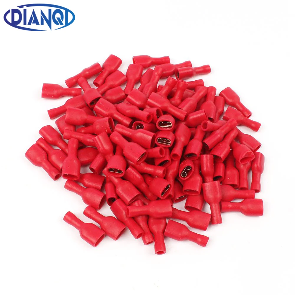 FDFD1.25-250 insulating Female Insulated Electrical Crimp Terminal Connectors Cable Wire Connector 100PCS/Pack FDFD