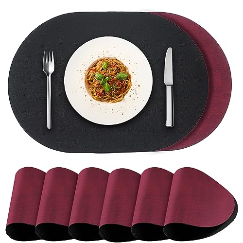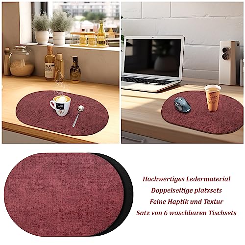 FDGAUCA Tovagliette lavabili Set di 6, tovagliette lavabili in ecopelle double face Tovagliette rotonde resistenti allo sporco e al calore Per interni ed esterni