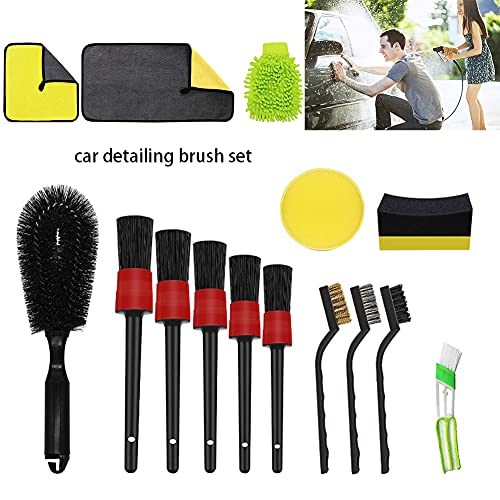 FDKJOK, set di pennelli per la pulizia dei dettagli dell'auto, per interni ed esterni, per auto, kit di dettagli come mostrato