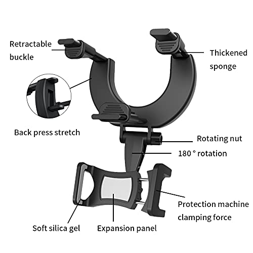 FDKJOK - Supporto per specchietto retrovisore auto, girevole a 360 gradi, regolabile, supporto per telefono cellulare, colore: nero
