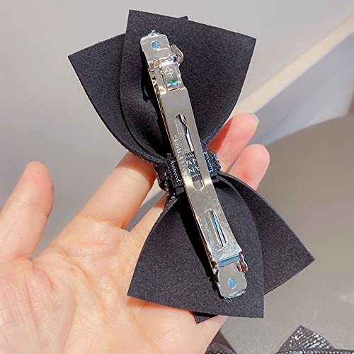 Fdsmall - Fermaglio per capelli lucido con doppio fiocco con strass e clip a molla per capelli con clip per fata sul retro della testa, colore: Bianco