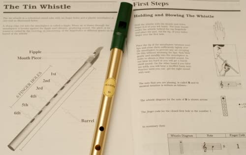 Feadog piffero di ottone in re, sacchetto contenente diteggiature