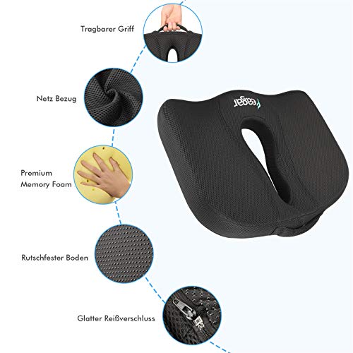 Feagar Cuscino per Sedile Tessuto a Rete - Cuscino Coccige Memory Foam - Ergonomico Cuscini Sedile per Auto, Ufficio,Computer, Sedia a rotelle, Alleviare Sciatica, Emorroidi, Dolori di Schiena (Nero)...