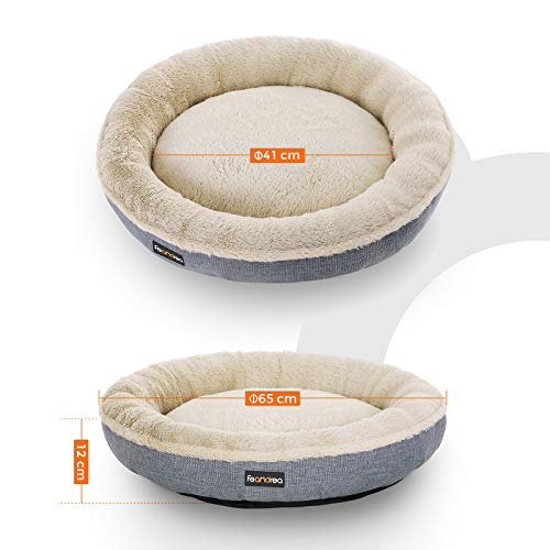 FEANDREA Cuccia Divano per Cani Gatti, Forma di Ciambella, 65 cm, Grigio PGW65G