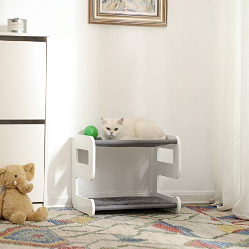 FEANDREA Cuccia per Gatti con 2 Ampi Livelli per Dormire, Mobile per Gatti a Forma di 9, Confortevole Letto per Gatti, in Tessuto Oxford e Robusto MDF, 48 x 40 x 40 cm, Bianco e Grigio PCB02WG