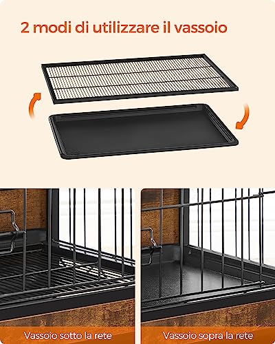 Feandrea Gabbia per Cani, Mobile Tavolino, Cuccia Moderna da Interno per Cani fino a 42 kg, Gabbia per Cuccioli, Vassoio Multiuso Rimovibile, Casetta per Animali, 2 Porte, Marrone Vintage PFC003X01
