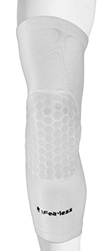 The fearless, Ginocchiera da pallacanestro, per bambini, donna e uomo, funzione di compressione, antiscivolo, bianco, M (Kinder)