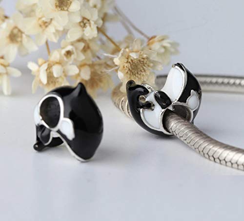 FeatherWish - Ciondolo in argento Sterling 925 con ciondolo a forma di orca e delfino, con smalto bianco e nero, compatibile con braccialetti o collane Pandora e Argento, colore: Orca Killer Whale