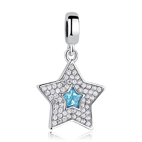 FeatherWish - Ciondolo in argento Sterling 925 con stella dei desideri blu, con zirconia cubica blu e trasparente, adatto a braccialetti Pandora