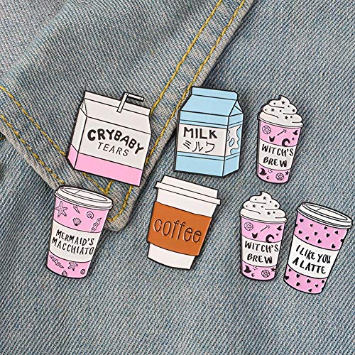 Febelle Donna Cartoon Coffee Cup Spille distintivi Creative Drinks Latte Box Lapel Spille per Vestiti Cappello Borsa di