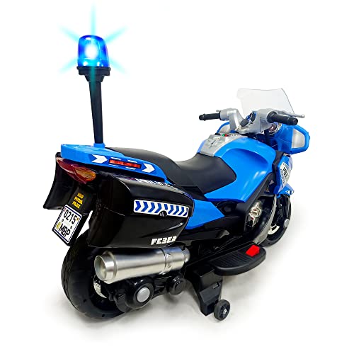 Feber - Moto della Polizia Azzurra con Batteria 12V, Luci e Suoni, Raccomandato per Bambini a Partire da 3 Anni, 800012891