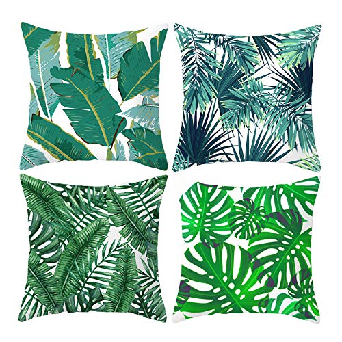 Federa per Cuscini,4 PCS Decorativi Copricuscini Tropicali in Lino e Cotone Federa Piante Fodera per Cuscino per Divano Casa per Decorazione Domestica Quadrato 18x18 pollici/45x45cm