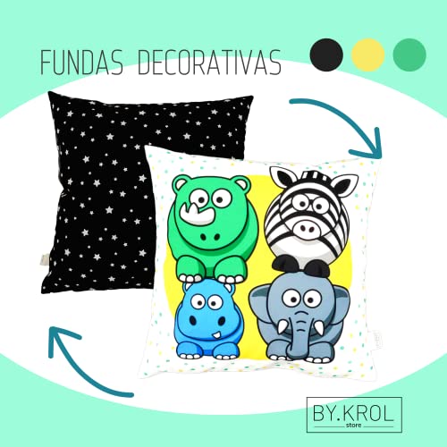 Include 2 federe per cuscini per bambini animali da 35 x 35 cm senza imbottitura, lavabile in lavatrice a 30 gradi. Asciugabile in asciugatrice con programma delicato. Facile da stirare.