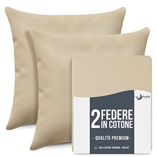 Federa Cuscino (Set di 2) - Per i Cuscini 40 x 40 cm, Beige Cotone, Dreamzie - 100% Jersey di Cotone - Copri Cuscino per Letto - Fodera Protezione per Cuscino