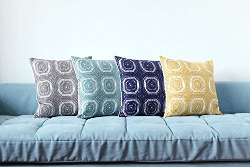 Mika Home, Federa per cuscino decorativa con ricamo geometrico a cerchi, 45 x 45 cm, inserti in cotone, grigio, bianco, Tessuto, Pattern 5, 45X45 CM