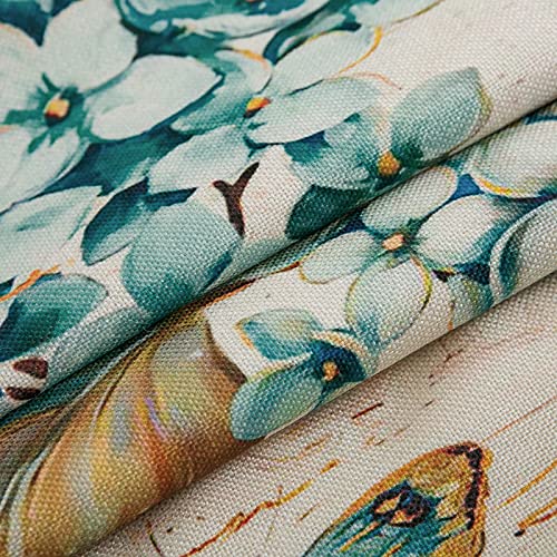Federa per Cuscino Decorazione Fiore, Uccello E Farfalla Federa Retro Set di 4 pezzi di Lino Copricuscino per Divano 45*45 cm per La Casa Soggiorno Camera da Letto Decorazione Blu