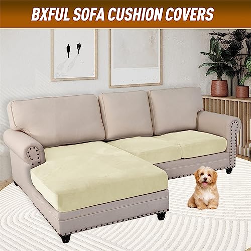 Federa per cuscino per divano, in velluto elasticizzato, per divano, copridivano elastico, ricambio per singoli cuscini (grande 1 posto, beige)