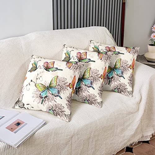 Federa per cuscino con farfalle, 45 x 45 cm, motivo floreale acquerello, per donne, ragazze, adolescenti, farfalle, fiori, vintage, grunge floreale