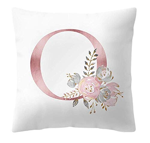 Federa per cuscino - 45 x 45 cm - Lettera O - Alfabeto - Nome - Iniziale - Divano - Letto - casa - Camera - Rose - Fiori - Colore Bianco