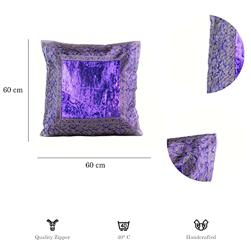 Federa per cuscino in stile indiano, 60 x 60 cm, federa orientale indiana, Lilla, 60 x 60 cm