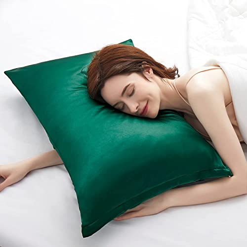 Federe in raso per capelli e pelle, confezione da 2, colore verde, per capelli e pelle, dimensioni standard, con chiusura a busta, 40 x 60 cm