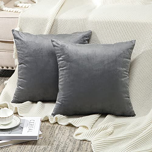 Ohok Federe per Cuscini Decorativi in Velluto 45 x 45 Set di 2, Federe Quadrate per Divano Divano Letto Sedia Camera da Letto Soggiorno Home Decor (Grigio)
