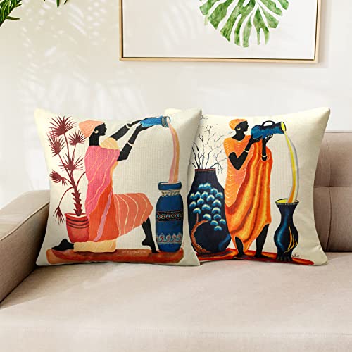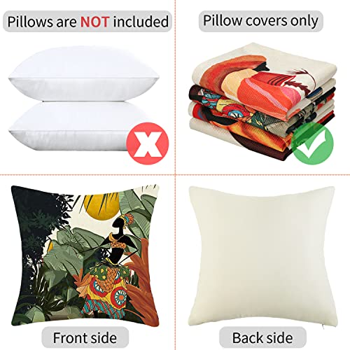 Set di 4 Federe Cuscini Divano 45x45cm Donna Africana Biancheria Federa Stile Etnico Tribale Vintage Fodere Cuscini Stampa Digitale Decorativi Copricuscini per Soggiorno Sedia Letto (Donna nera)
