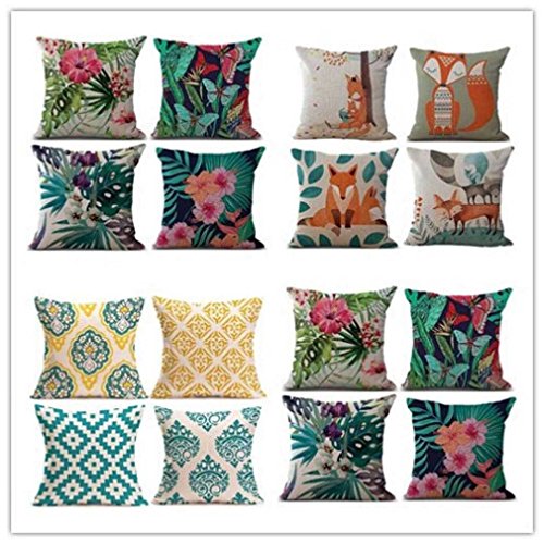 Federe Cuscini,Fittingran Liquidazione 4 PZ Federe per Cuscini di Lino Stampa Federa Cafe Casa Partito Divano Cuscino Home Decor Cuscino Copertura di Tiro Vacanza Cuscino (H)
