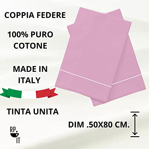 RP.IT® - Federe cuscini letto matrimoniale - Set 2 federe cuscini letto - 100% puro cotone- Federe cuscini letto - Copricuscini Letto - Federa cuscino 50x80 - Colori Tinta Unita. (ROSA)