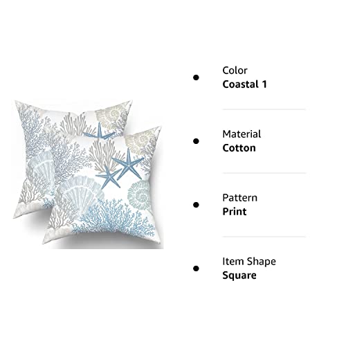 Set di 2 federe per cuscini quadrati in morbido cotone, motivo marino, 40x45 cm, motivo mare estivo, conchiglie, corallo stella marina, patio, camera da letto