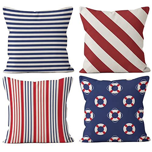 Ohok Set di 4 federe decorative per cuscini da 18 x 18 cm, per decorare casa, divano, sedia, letto, soggiorno (salvagente strutturato)