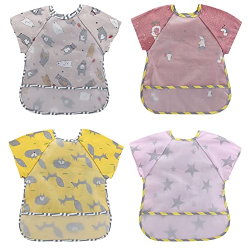 FedMois Bavaglini a Maniche Corte con Tasca Impermeabile Bimbi Bambini Confezione da 4, Colori per Bambina