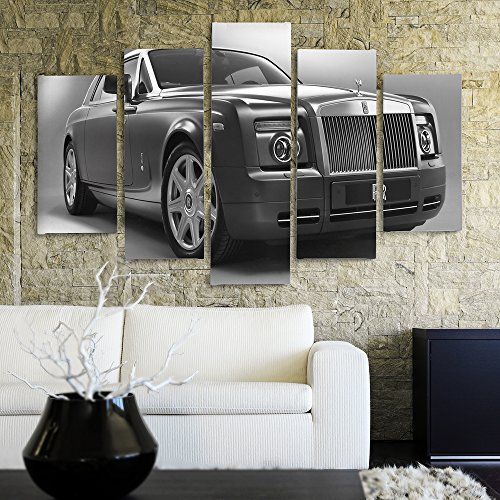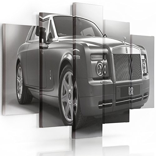 Feeby Frames, Quadro multipannello di 5 pannelli, Quadro su tela, Stampa artistica, Canvas 70x100 cm, Tipo A, ROLLS-ROYCE AUTO NERO BIANCO